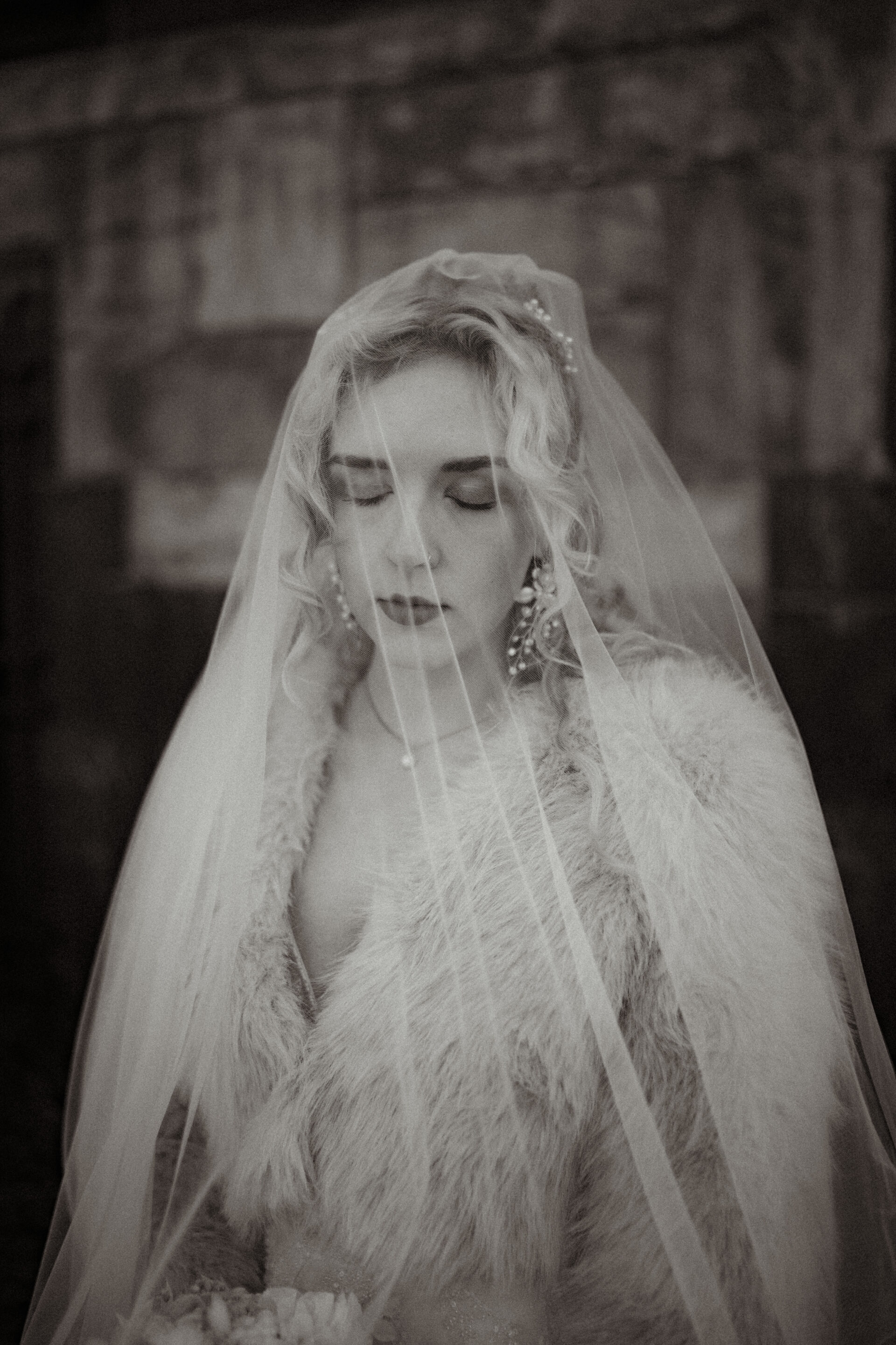 Hochzeitskleid Braut schaut aus dem Fenster Brautkleid